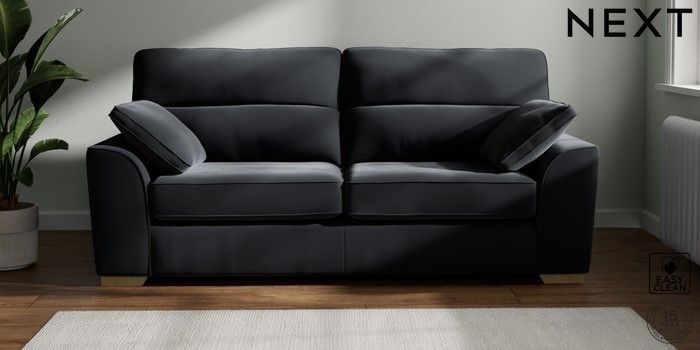7.3.1 Buy Stamford Highback 3 Seater Sofa Plush Velvet Easy Clean Charcoal Grey Large Square Angle - Light from the Next UK online shop Click here to use our accessible website