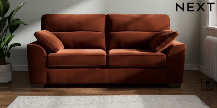 7.2.6 Buy Stamford Highback 3 Seater Sofa Plush Velvet Easy Clean Ginger Orange Large Square Angle - Gunmetal from the Next UK online shop Click here to use our accessible website