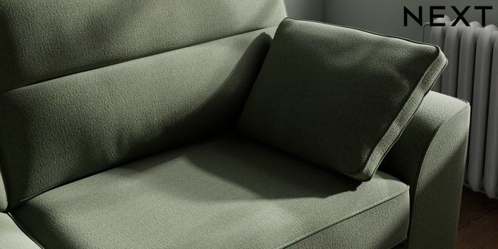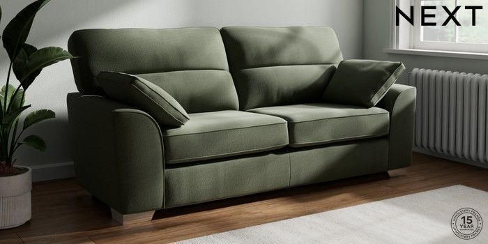 7.3.1 Buy Stamford Highback 3 Seater Sofa Relaxed Linen Look Dark Green Large Square Angle - Chrome Metal from the Next UK online shop Click here to use our accessible website