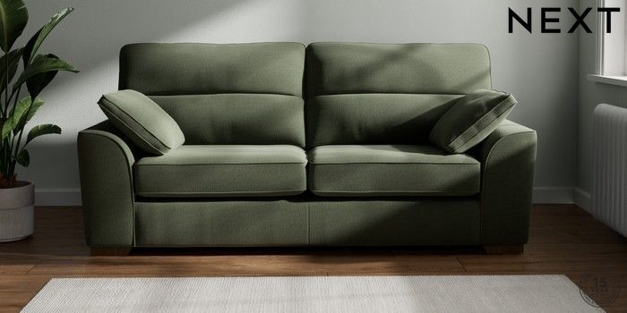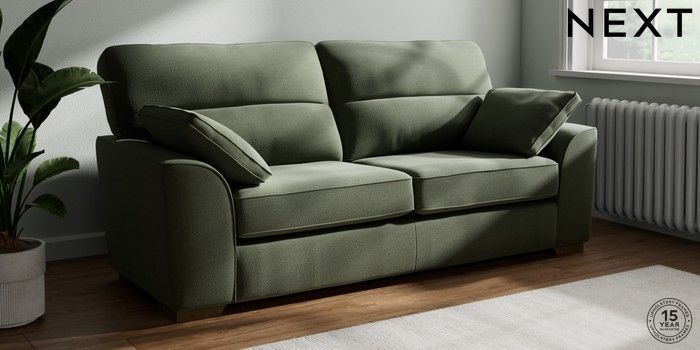 7.2.10 Buy Stamford Highback 3 Seater Sofa Relaxed Linen Look Dark Green Large Square Angle - Mid from the Next UK online shop Click here to use our accessible website