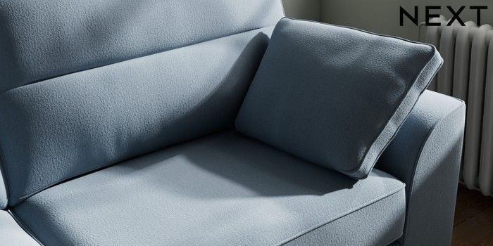 7.3.1 Buy Stamford Highback 3 Seater Sofa Relaxed Linen Look Mid Blue Large Square Angle - Chrome Metal from the Next UK online shop Click here to use our accessible website