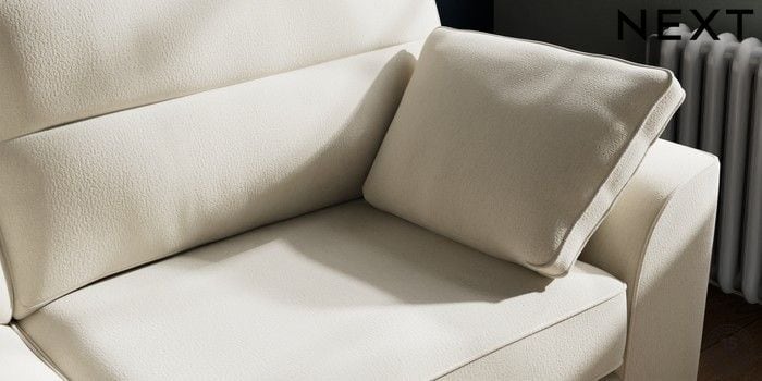 7.3.1 Buy Stamford Highback 3 Seater Sofa Relaxed Linen Look Oyster Large Square Angle - Chrome Metal from the Next UK online shop Click here to use our accessible website