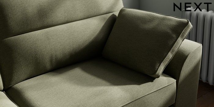 7.2.10 Buy Stamford Highback 3 Seater Sofa Ripple Chenille Mid Moss Green Large Square Angle - Chrome Metal from the Next UK online shop Click here to use our accessible website