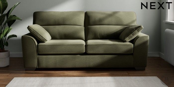 7.2.10 Buy Stamford Highback 3 Seater Sofa Ripple Chenille Mid Moss Green Large Square Angle - Gunmetal from the Next UK online shop Click here to use our accessible website