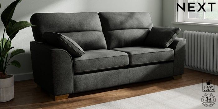 7.3.1 Buy Stamford Highback 3 Seater Sofa Tweedy Blend Easy Clean Charcoal Grey Large Square Angle - Brushed Brass from the Next UK online shop Click here to use our accessible website