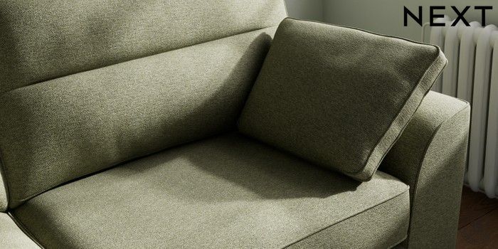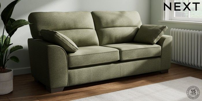 7.3.1 Buy Stamford Highback 3 Seater Sofa Tweedy Chenille Mid Moss Green Large Square Angle - Gunmetal from the Next UK online shop Click here to use our accessible website