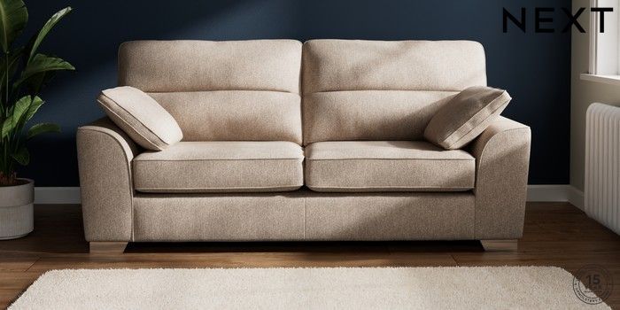 7.2.6 Buy Stamford Highback 3 Seater Sofa Tweedy Chenille Mid Natural Large Square Angle - Chrome Metal from the Next UK online shop Click here to use our accessible website