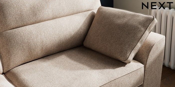 7.3.1 Buy Stamford Highback 3 Seater Sofa Tweedy Chenille Mid Natural Large Square Angle - Gunmetal from the Next UK online shop Click here to use our accessible website
