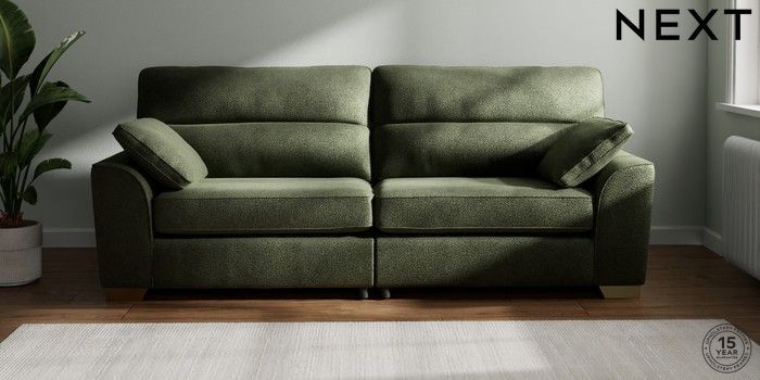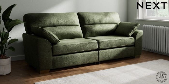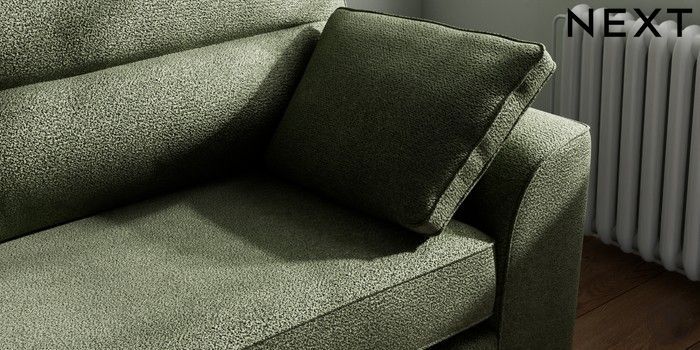 7.2.10 Buy Stamford Highback 4 Seater Sofa Boucle Chenille Dark Moss Green Large Square Angle - Brushed Brass from the Next UK online shop Click here to use our accessible website