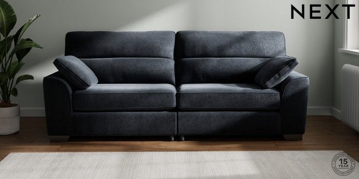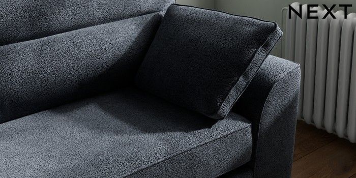 7.3.1 Buy Stamford Highback 4 Seater Sofa Boucle Chenille Dark Slate Blue Large Square Angle - Gunmetal from the Next UK online shop Click here to use our accessible website