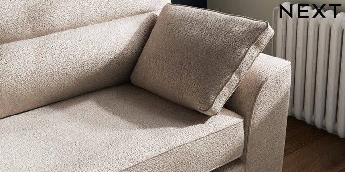 7.2.10 Buy Stamford Highback 4 Seater Sofa Boucle Chenille Light Natural Large Square Angle - Gunmetal from the Next UK online shop Click here to use our accessible website