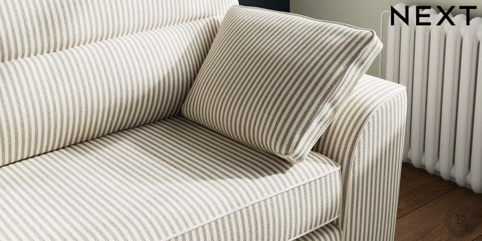 7.3.1 Buy Stamford Highback 4 Seater Sofa Chenille Stripe Moss Green Large Square Angle - Chrome Metal from the Next UK online shop Click here to use our accessible website
