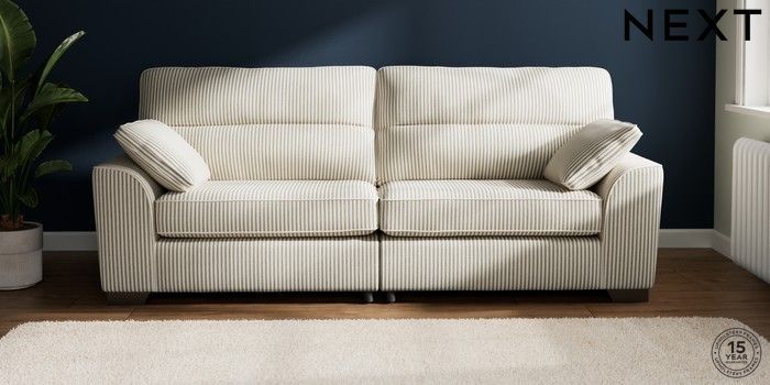 7.3.1 Buy Stamford Highback 4 Seater Sofa Chenille Stripe Moss Green Large Square Angle - Gunmetal from the Next UK online shop Click here to use our accessible website