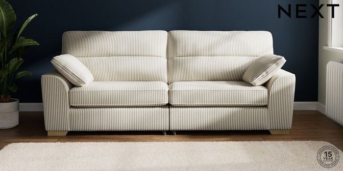 7.3.1 Buy Stamford Highback 4 Seater Sofa Chenille Stripe Moss Green Large Square Angle - Light from the Next UK online shop Click here to use our accessible website