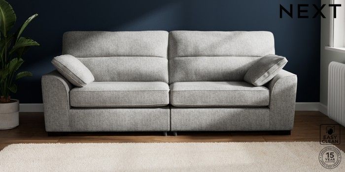 6.12.13 Buy Stamford Highback 4 Seater Sofa Chunky Boucle Easy Clean Light Grey Large Square Angle - Dark from the Next UK online shop Click here to use our accessible website
