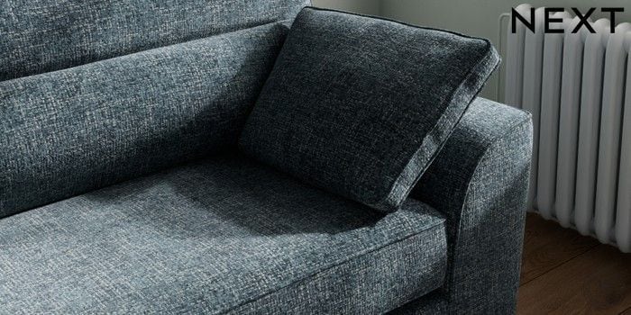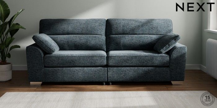 7.2.10 Buy Stamford Highback 4 Seater Sofa Chunky Chenille Dark Navy Blue Large Square Angle - Chrome Metal from the Next UK online shop Click here to use our accessible website