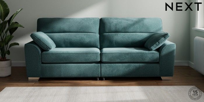 7.2.6 Buy Stamford Highback 4 Seater Sofa Chunky Chenille Mid Teal Green Large Square Angle - Chrome Metal from the Next UK online shop Click here to use our accessible website