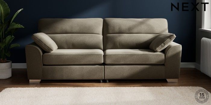 7.2.10 Buy Stamford Highback 4 Seater Sofa Chunky Marl Light Olive Green Large Square Angle - Chrome Metal from the Next UK online shop Click here to use our accessible website