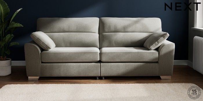 7.2.10 Buy Stamford Highback 4 Seater Sofa Chunky Texture Dove Large Square Angle - Chrome Metal from the Next UK online shop Click here to use our accessible website