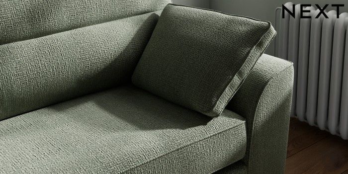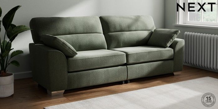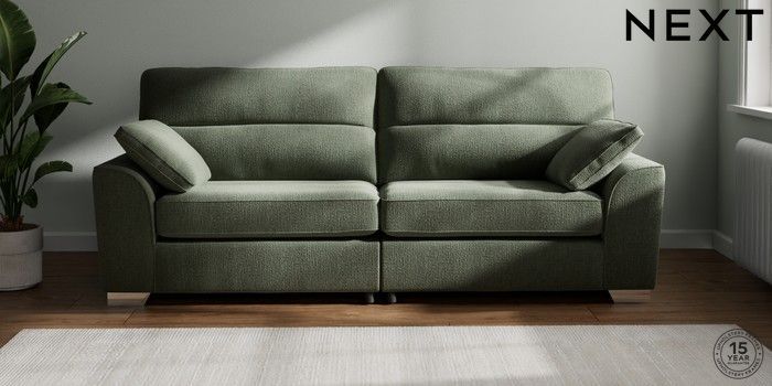 7.2.10 Buy Stamford Highback 4 Seater Sofa Chunky Texture Mid Forest Green Large Square Angle - Chrome Metal from the Next UK online shop Click here to use our accessible website