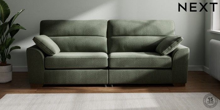 7.2.10 Buy Stamford Highback 4 Seater Sofa Chunky Texture Mid Forest Green Large Square Angle - Mid from the Next UK online shop Click here to use our accessible website