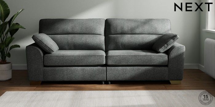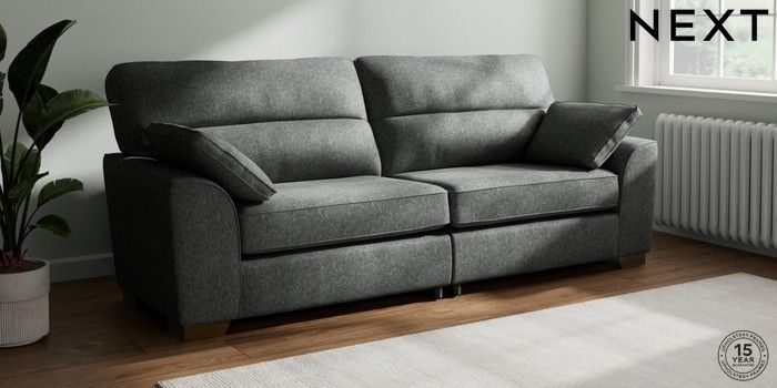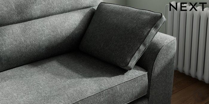 7.2.6 Buy Stamford Highback 4 Seater Sofa Cotswold Chenille Dark Grey Large Square Angle - Brushed Brass from the Next UK online shop Click here to use our accessible website