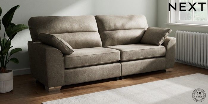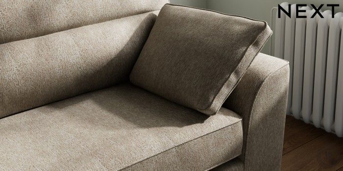 7.2.6 Buy Stamford Highback 4 Seater Sofa Cotswold Chenille Mid Mink Brown Large Square Angle - Chrome Metal from the Next UK online shop Click here to use our accessible website