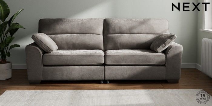 6.12.1 Buy Stamford Highback 4 Seater Sofa Distressed Velour French Grey Large Square Angle - Gunmetal from the Next UK online shop Click here to use our accessible website