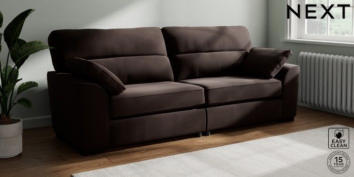 7.2.10 Buy Stamford Highback 4 Seater Sofa Fine Chenille Easy Clean Chocolate Brown Large Square Angle - Dark from the Next UK online shop Click here to use our accessible website