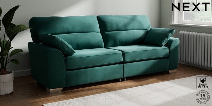 7.3.1 Buy Stamford Highback 4 Seater Sofa Fine Chenille Easy Clean Dark Juniper Green Large Square Angle - Chrome Metal from the Next UK online shop Click here to use our accessible website