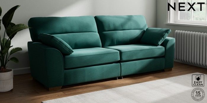 7.2.10 Buy Stamford Highback 4 Seater Sofa Fine Chenille Easy Clean Dark Juniper Green Large Square Angle - Mid from the Next UK online shop Click here to use our accessible website