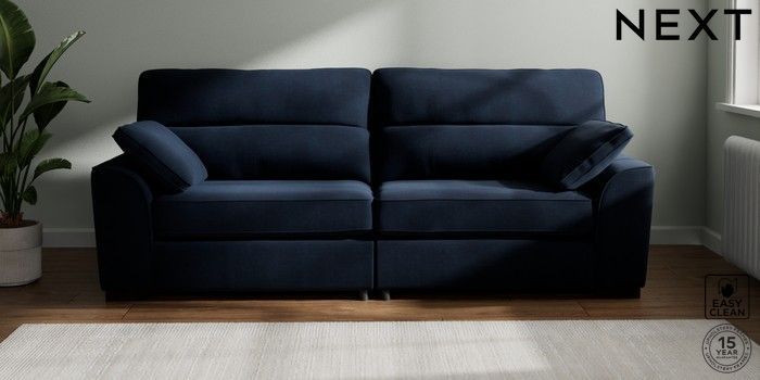7.2.6 Buy Stamford Highback 4 Seater Sofa Fine Chenille Easy Clean Dark Navy Blue Large Square Angle - Dark from the Next UK online shop Click here to use our accessible website