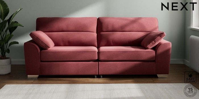 7.2.6 Buy Stamford Highback 4 Seater Sofa Fine Chenille Easy Clean Mid Pink Large Square Angle - Chrome Metal from the Next UK online shop Click here to use our accessible website