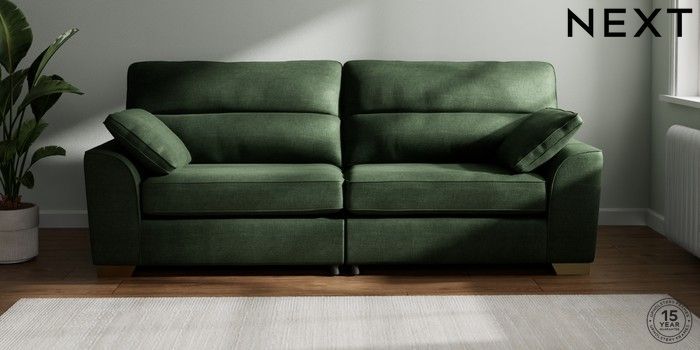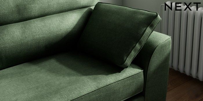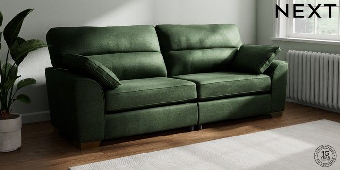 7.2.10 Buy Stamford Highback 4 Seater Sofa Luxe Chenille Dark Green Large Square Angle - Brushed Brass from the Next UK online shop Click here to use our accessible website