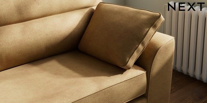7.2.6 Buy Stamford Highback 4 Seater Sofa Luxe Chenille Honey Yellow Large Square Angle - Chrome Metal from the Next UK online shop Click here to use our accessible website