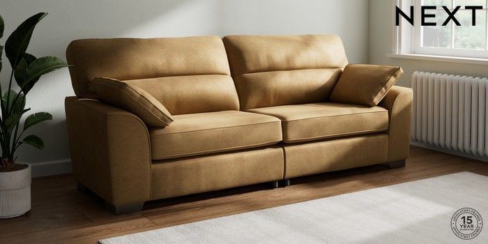 7.2.6 Buy Stamford Highback 4 Seater Sofa Luxe Chenille Honey Yellow Large Square Angle - Gunmetal from the Next UK online shop Click here to use our accessible website