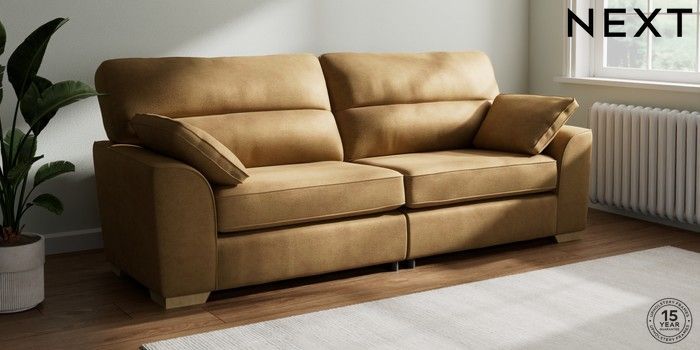 7.2.6 Buy Stamford Highback 4 Seater Sofa Luxe Chenille Honey Yellow Large Square Angle - Light from the Next UK online shop Click here to use our accessible website