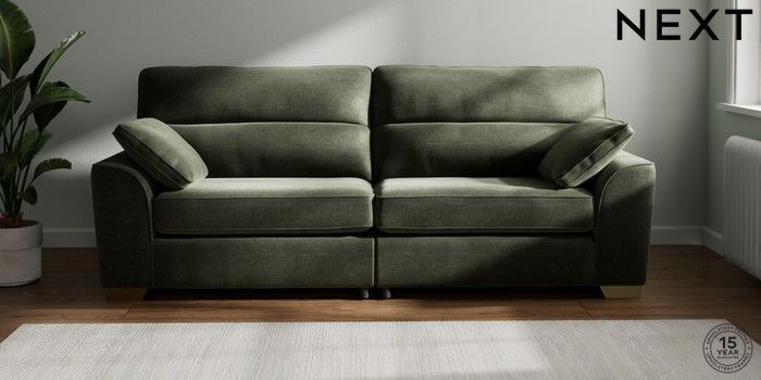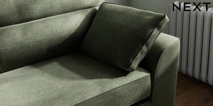 7.2.6 Buy Stamford Highback 4 Seater Sofa Luxe Chenille Mid Green Large Square Angle - Brushed Brass from the Next UK online shop Click here to use our accessible website