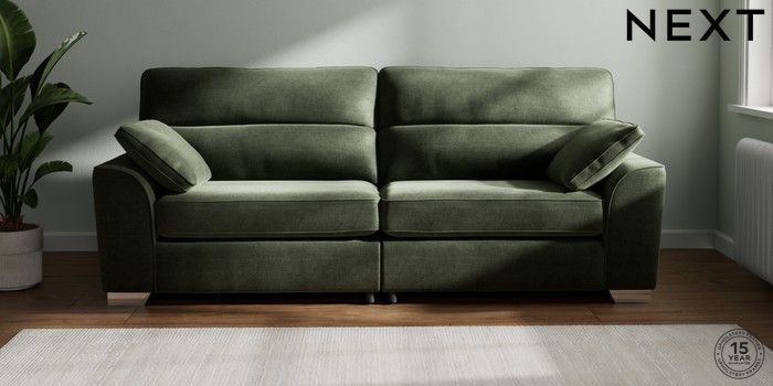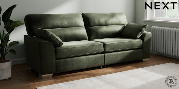 7.2.6 Buy Stamford Highback 4 Seater Sofa Luxe Chenille Mid Green Large Square Angle - Chrome Metal from the Next UK online shop Click here to use our accessible website