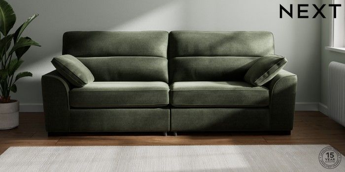6.12.1 Buy Stamford Highback 4 Seater Sofa Luxe Chenille Mid Green Large Square Angle - Dark from the Next UK online shop Click here to use our accessible website