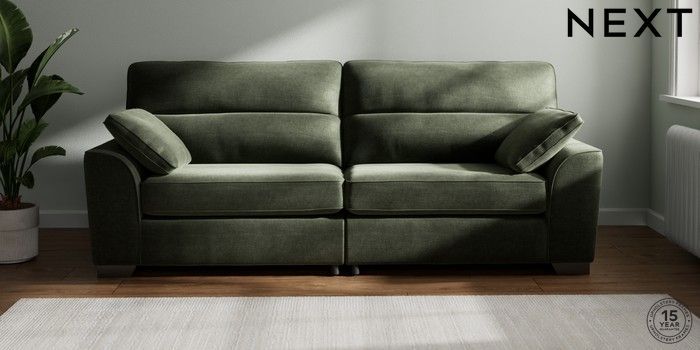 6.12.1 Buy Stamford Highback 4 Seater Sofa Luxe Chenille Mid Green Large Square Angle - Gunmetal from the Next UK online shop Click here to use our accessible website