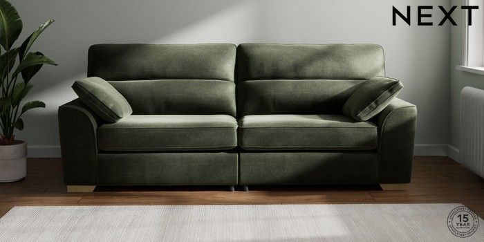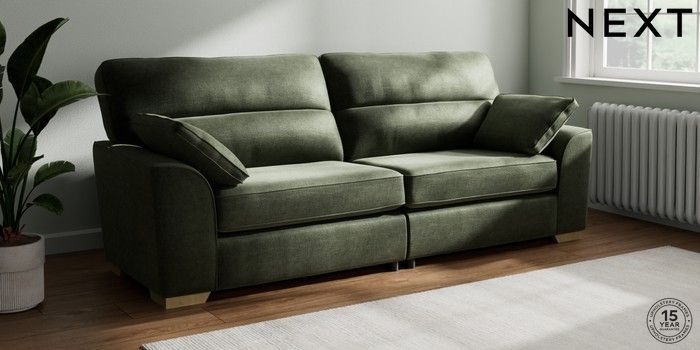 7.2.6 Buy Stamford Highback 4 Seater Sofa Luxe Chenille Mid Green Large Square Angle - Light from the Next UK online shop Click here to use our accessible website