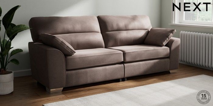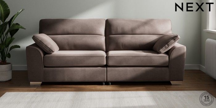7.2.10 Buy Stamford Highback 4 Seater Sofa Luxe Chenille Mink Brown Large Square Angle - Chrome Metal from the Next UK online shop Click here to use our accessible website