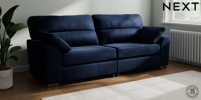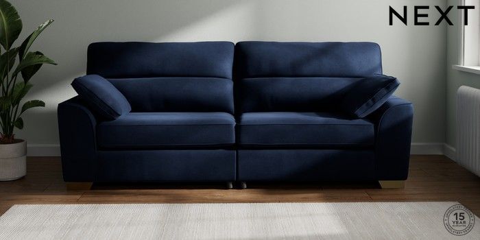 7.2.10 Buy Stamford Highback 4 Seater Sofa Luxe Chenille Navy Blue Large Square Angle - Brushed Brass from the Next UK online shop Click here to use our accessible website