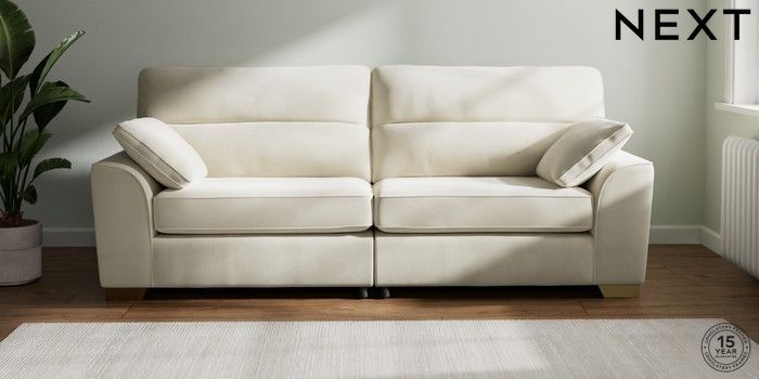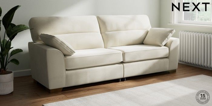 7.0.3 Buy Stamford Highback 4 Seater Sofa Luxe Chenille Oyster Large Square Angle - Brushed Brass from the Next UK online shop Click here to use our accessible website