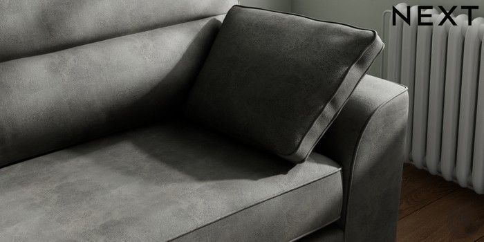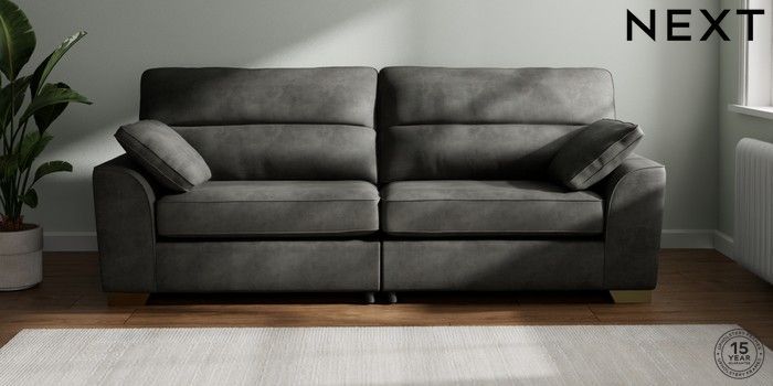 7.3.1 Buy Stamford Highback 4 Seater Sofa Monza Faux Leather Easy Clean Dark Grey Large Square Angle - Brushed Brass from the Next UK online shop Click here to use our accessible website