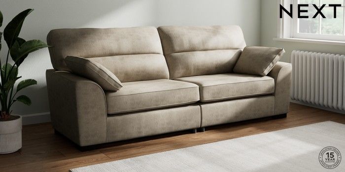 7.3.1 Buy Stamford Highback 4 Seater Sofa Monza Faux Leather Easy Clean Mink Brown Large Square Angle - Dark from the Next UK online shop Click here to use our accessible website