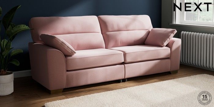 7.2.10 Buy Stamford Highback 4 Seater Sofa Natural Mix Light Rose Pink Large Square Angle - Brushed Brass from the Next UK online shop Click here to use our accessible website