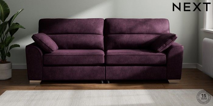7.2.6 Buy Stamford Highback 4 Seater Sofa Plush Chenille Dark Plum Purple Large Square Angle - Chrome Metal from the Next UK online shop Click here to use our accessible website