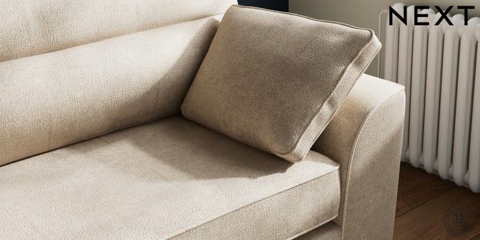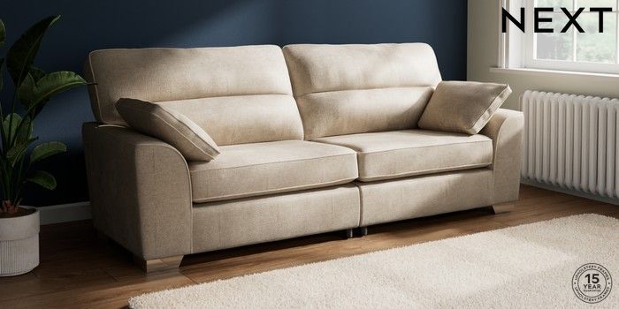 7.2.10 Buy Stamford Highback 4 Seater Sofa Plush Chenille Light Natural Large Square Angle - Chrome Metal from the Next UK online shop Click here to use our accessible website